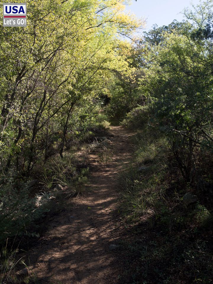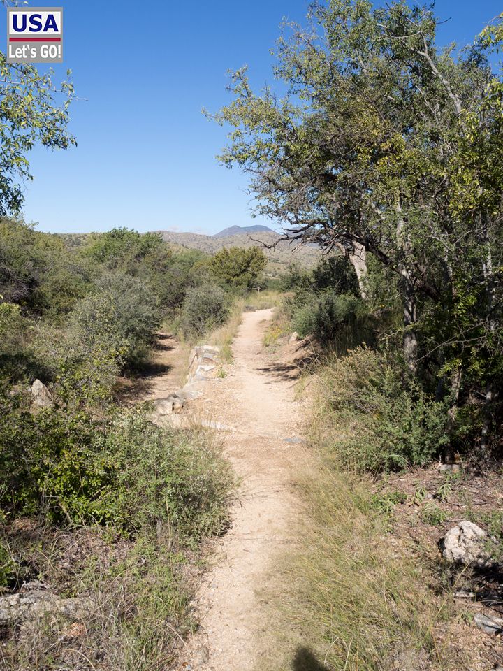 Was für ein schöner Weg! Kurz vor dem Ziel kreuzt er den Apache Spring und es gibt sogar ein wenig Schatten. Trotz der noch relativ frühen Stunde, ist es mittlerweile schon ganz schön warm und ich bin froh nicht permanent in der intensiven Sonne laufen zu müssen.