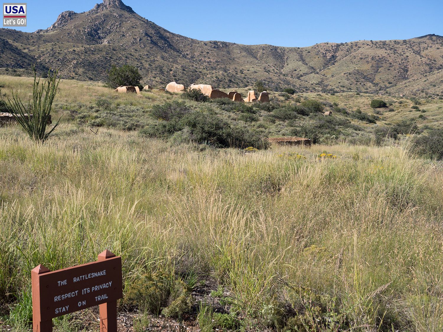 Es dauert nicht mehr lange und ich habe mein Ziel erreicht. Vor mir liegen die rudimentären Überreste von Fort Bowie. Viel ist von den ehemaligen Mannschafts- und Funktionsgebäuden nicht mehr davon zu sehen, aber noch immer ist der Adobe-Stil der Anlage unverkennbar.