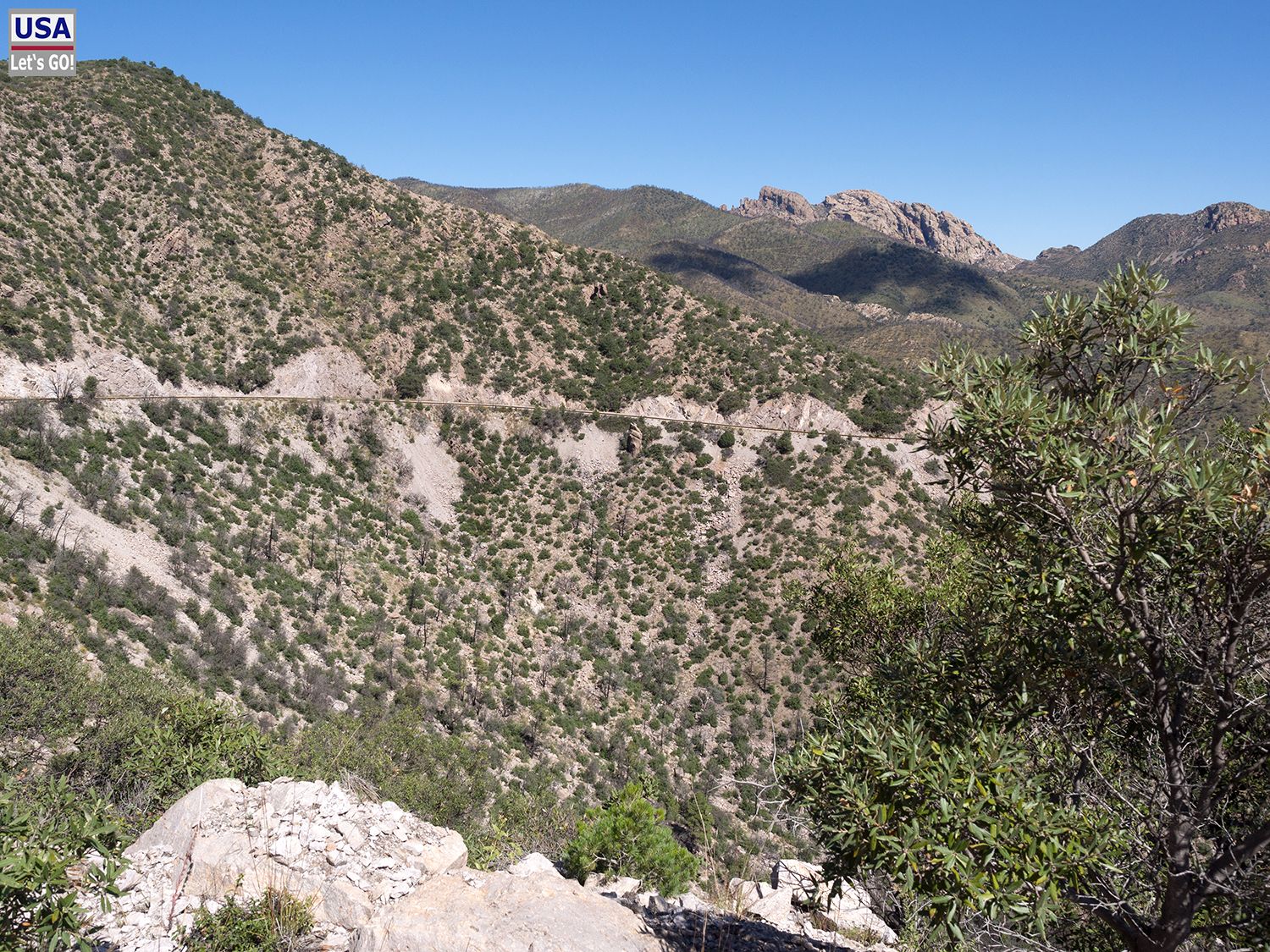 Ich fahre die Parkstraße dann weiter durch den Bonita Canyon und in höhere Lagen und staune über die famose Aussicht auf die unwegsame Bergwelt um mich herum.