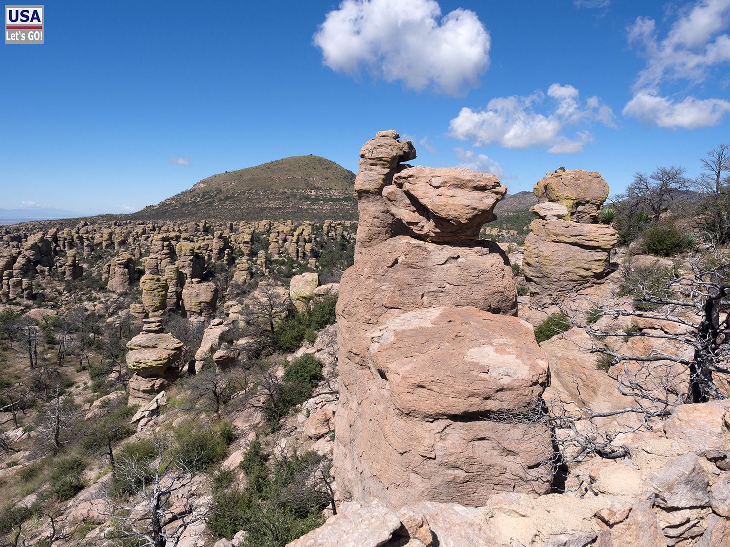 Beim Massai Point halte ich an und gehe den kurzen trail zum Aussichtspunkt. Während mir auf der kurvigen Fahrt auf dem Bonita Canyon Drive so gut wie keine Autos begegnet sind, ist hier doch ein wenig mehr Betrieb. Schließlich zählt der Massai Point zu den besten overlooks überhaupt im Chiricahua NM.