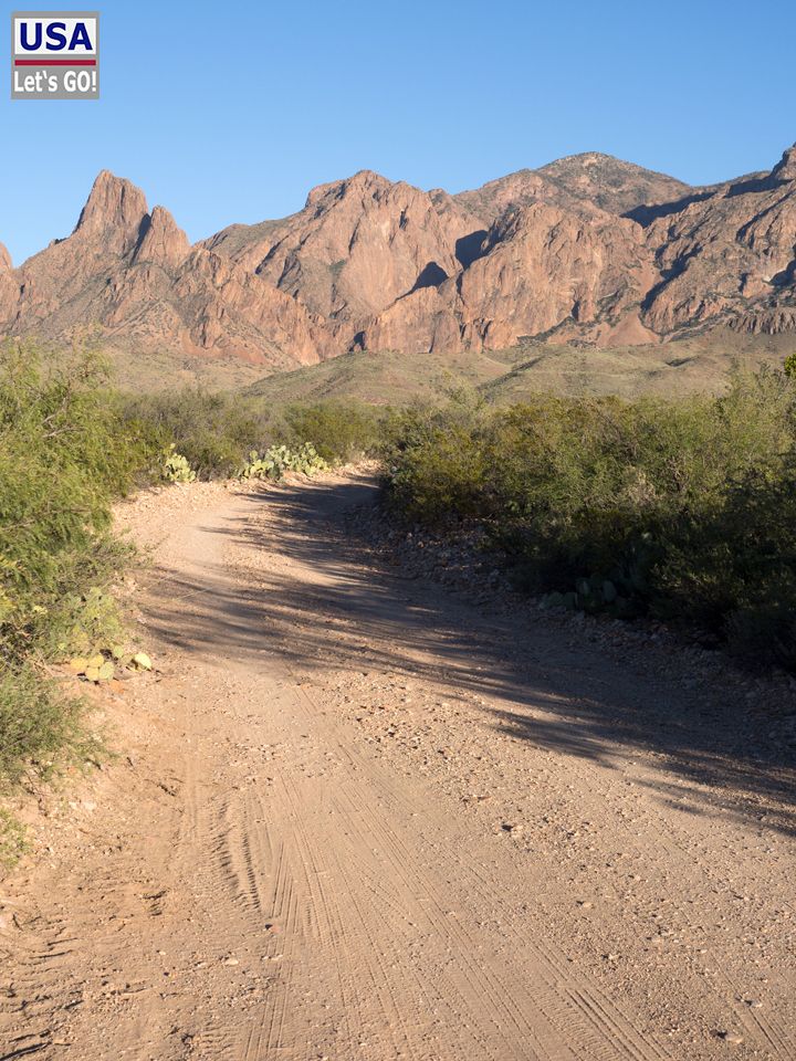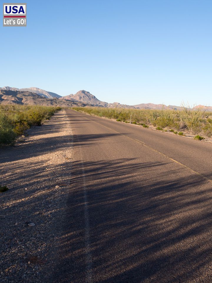 Bald erreiche ich die Castolon/ Santa Elena Junction der Hauptparkstraße und biege links Richtung Maverick Junction ab. Auch hier keine Menschenseele und grandioses Fotolicht (s. Bild rechts). Bis Study Butte sind es nur noch zwölf Meilen. Zur Not laufe ich das zu Fuß.