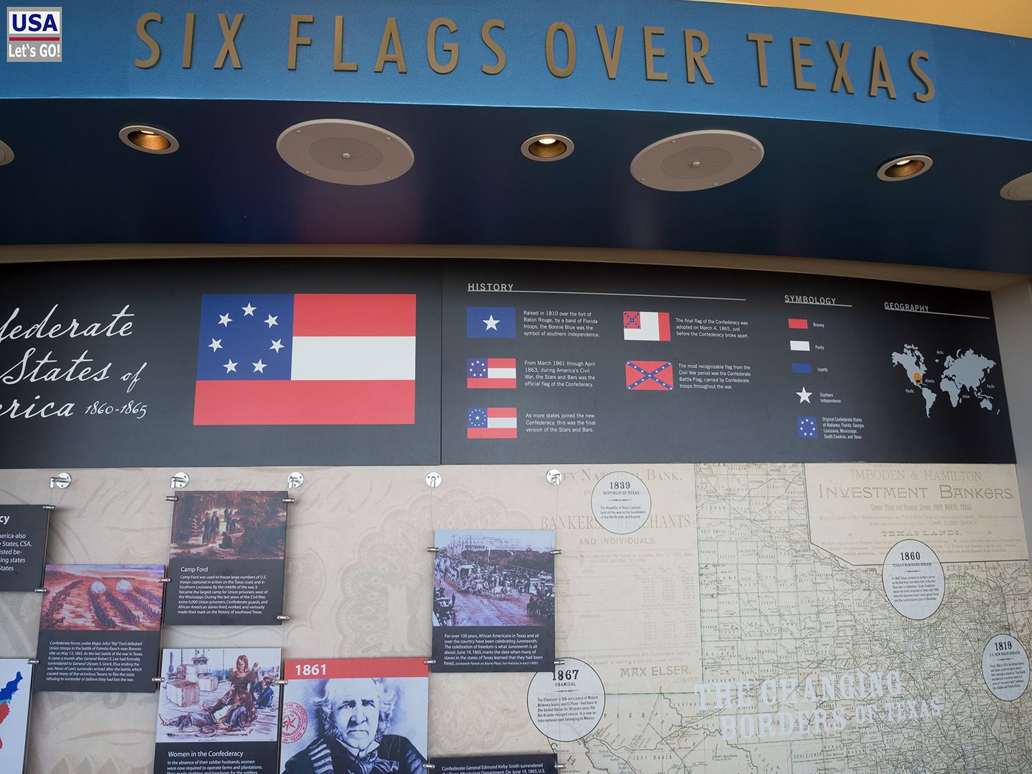 Oben angekommen macht sich bei mir nach einem kurzen Rundgang erstmal Enttäuschung breit. Scheinbar kann man nur durch ziemlich verschmierte Fensterscheiben fotografieren. Na toll! Dafür wird die Geschichte von Texas schön rübergebracht, aber das ist doch nicht der eigentliche Grund für meinen Besuch.