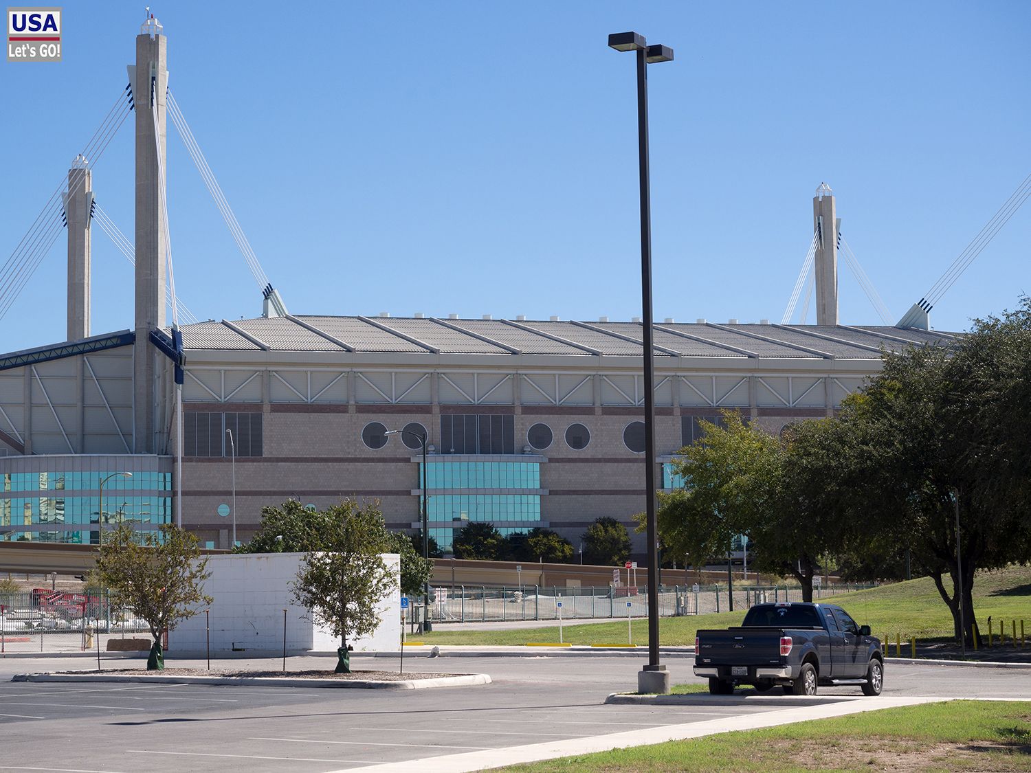 Vom Parkplatz mache ich noch ein Foto vom Alamodome, wo die Spurs auf Körbejagd gehen.