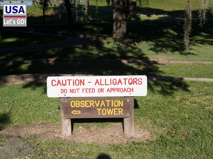 Bevor ich die Zufahrtstraße zum Brazos Bend SP finde, verfahre ich mich erst einmal und muss ein paar Meilen zurückfahren. Dann bin ich an Ort und Stelle, bezahle meine sieben USD Eintritt an der self pay station und werde gleich eingestimmt, auf die Hauptattraktion des Parks.