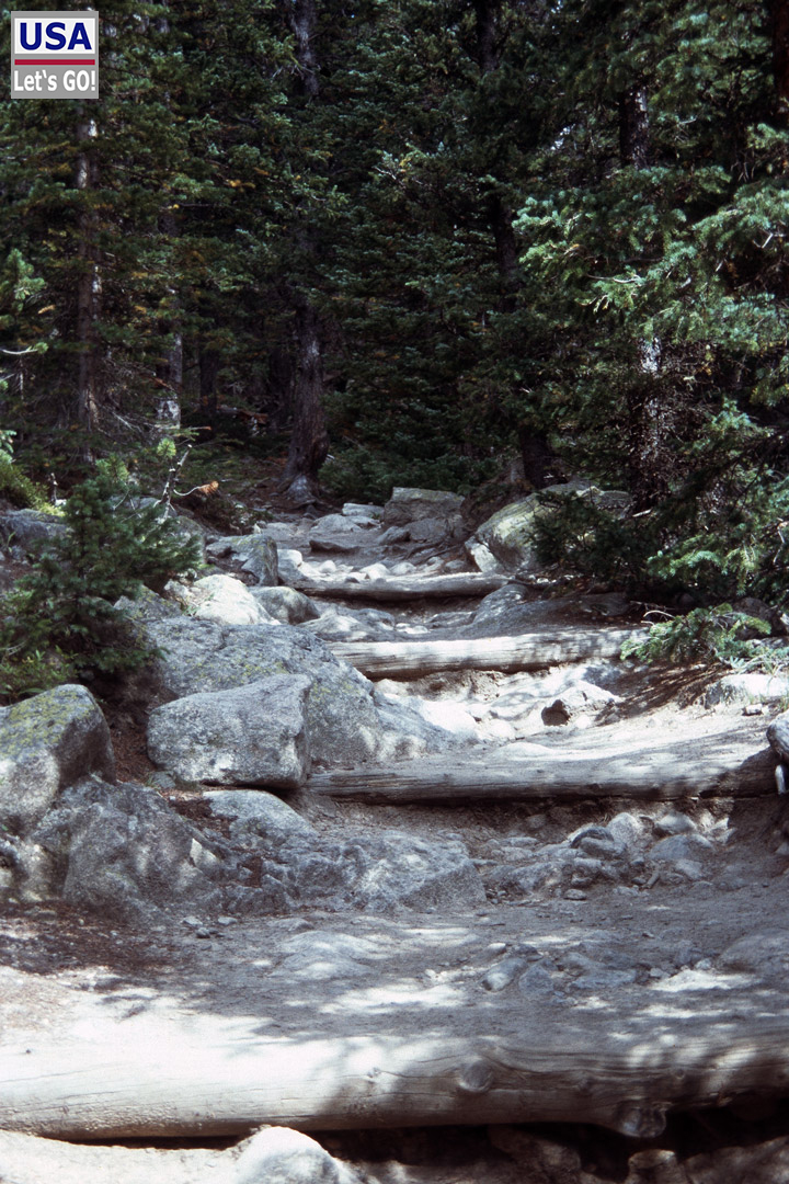 Nach einem Teller Müsli zum Frühstück fuhren wir zum Longs Peak Campground südlich von Estes Park, wo wir noch eine campsite erwischten. Dann wanderten wir vom Longs Peak Trailhead zum Chasm Lake. Das war schon ziemlich anstrengend, denn der trailhead lag in fast 3000 m Höhe.