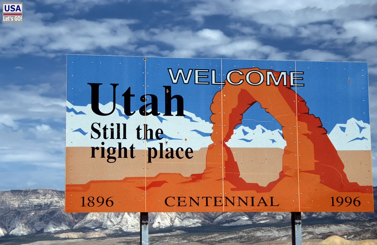 Es stellte sich heraus, dass der Echo Park Campground, der von diesem Eingang aus zu erreichen war, ziemlich weit entfernt am Ende einer steilen Schotterstraße liegt. Das wollten wir unserer Klapperkiste, die uns bis hierher gute Dienste geleistet hatte, nicht antun. Kurz entschlossen fuhren wir Richtung Westeingang und passierten die Grenze nach Utah.