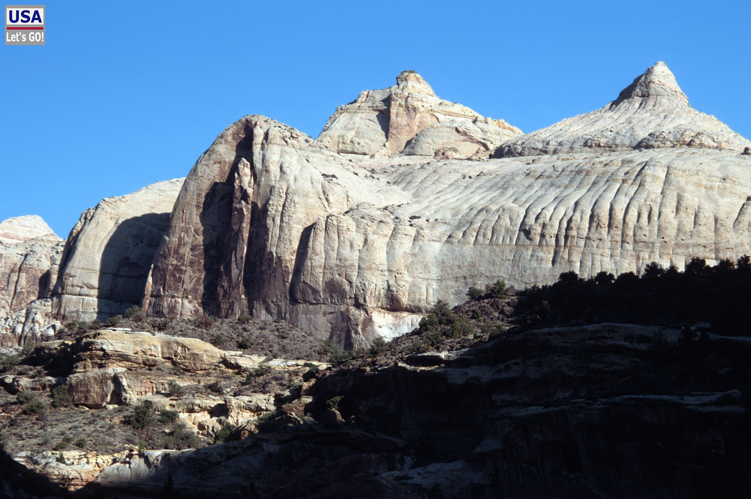 Am Samstagmorgen fuhren wir nach dem Frühstück (weiches "Brot" und Honig) nochmal zum Eingang des Capitol Reef NP zurück. Von dort fuhren wir die Parkstraße nach Fruita in Ruhe, um die beeindruckenden Felswände und die Felsmalereien der Fremont Indianer, die hier vor ca. 1000 Jahren lebten, zu bewundern.