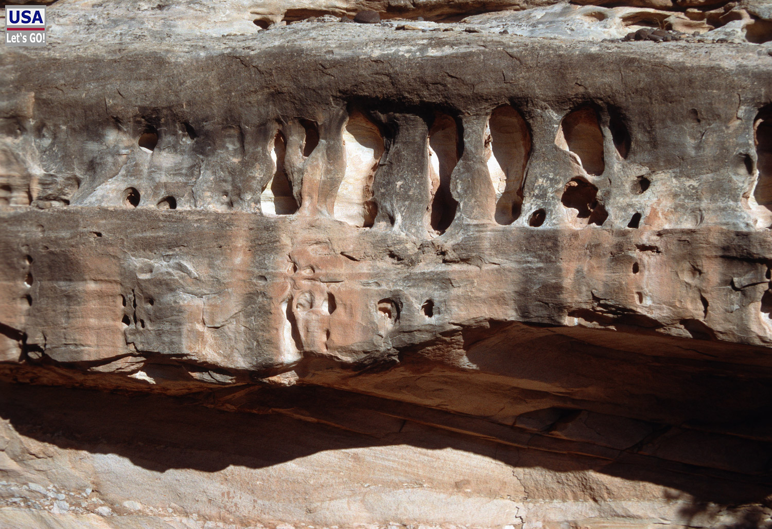 Wind und Wasser hatten das weiche Gestein an manchen Stellen ausgehöhlt wie Schweizer Käse.
