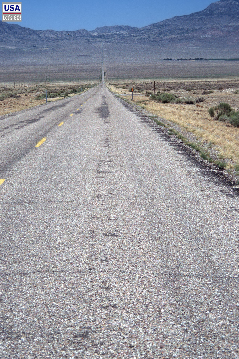 Nach diesem gemütlichen Morgen tankten wir kurz in Baker und fuhren dann weiter nach Ely, wo wir nach einmal nachtankten und bei Pizza Hut zu Mittag aßen. Dann ging es weiter über ganz einsame Straßen Richtung Westen. Die Stadtväter von Eureka hatten sich wohl gedacht, wenn es sonst nichts hier gibt, machen wir eben Werbung damit, dass hier absolut nichts los ist.