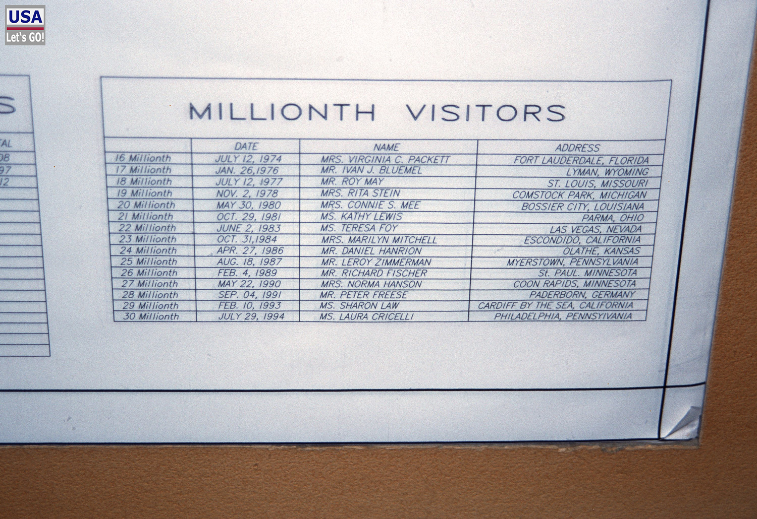 Allerdings war sehr viel Betrieb - offenbar besuchten viele Touristen den Staudamm. Darum verzichteten wir auch auf die Führung und sahen uns die Show im Visitor Center an. Dort hing auch eine Liste mit jedem Millionsten Besucher. Anjas Universitäts-Prof. Peter Freese war als 28 Millionster Besucher darauf zu finden.