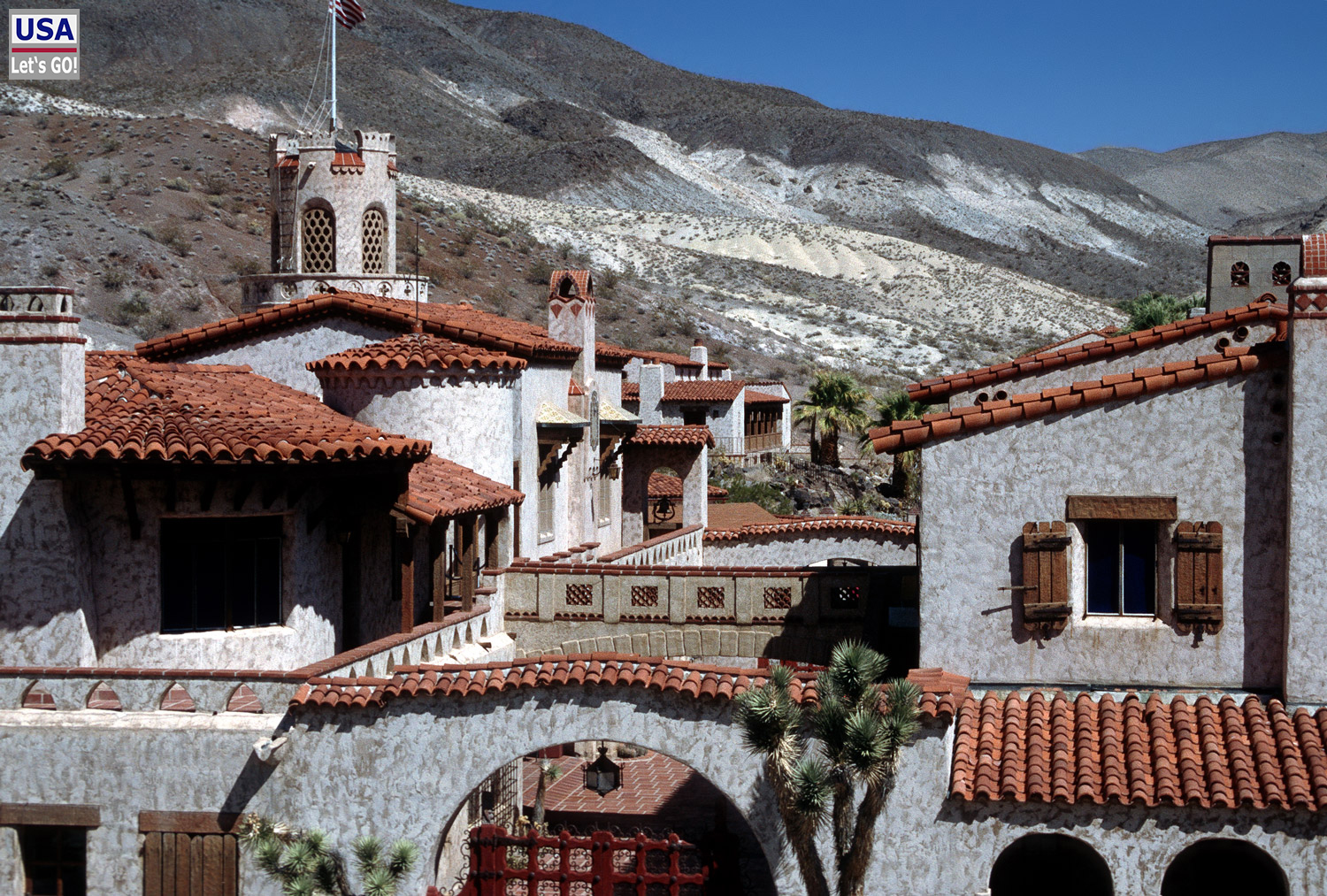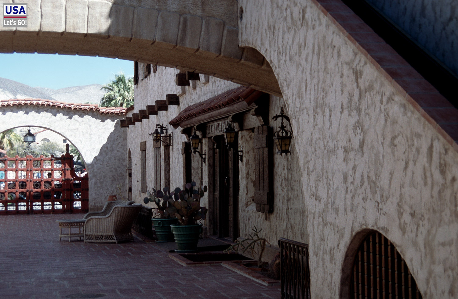Am Mittwochmorgen frühstückten wir erst einmal gemütlich im Hotel. Das Essen war sehr preisgünstig und auch gut, und es herrschte eine angenehme Atmosphäre. Nach dem Auschecken ging es los zum Death Valley National Monument. Es wurde immer einsamer und gegen Mittag kamen wir bei Scotty´s Castle im Norden des National Monuments an.