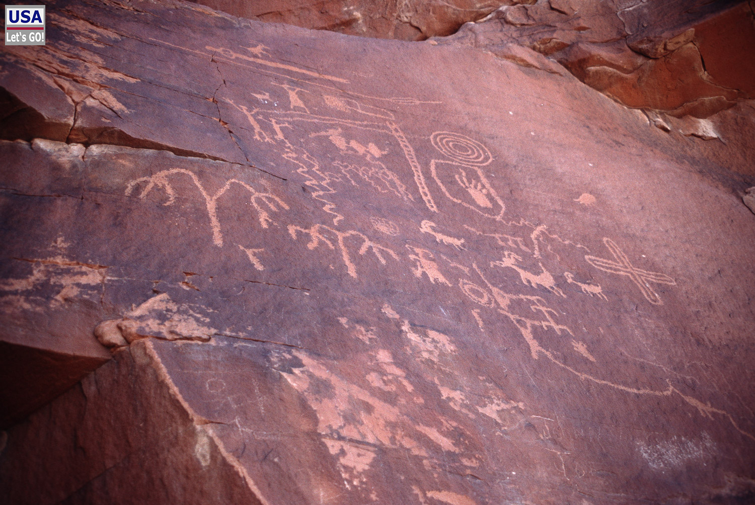 Auch diese Gegend mit ihren roten Felsen hatte ihren Reiz. Darüber hinaus gab es viele Petroglyphen, indianische Zeichnungen aus der Zeit, in der Columbus Amerika noch lange nicht entdeckt hatte.