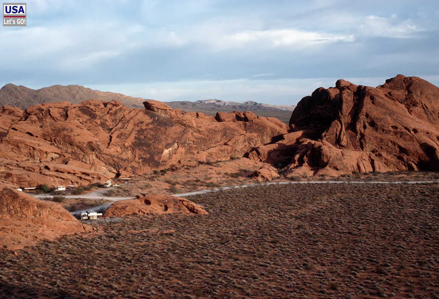 Am Freitag konnten wir ähnliche Gegensätze erleben. Nach dem Auschecken fuhren wir zum Circus Circus, um dort für nur 2,99 USD sagenhaft am Buffet zu schlemmen. Anschließend tankten wir und kauften ein, und ca. eine Stunde später waren wir nach einer kurzen Fahrt über die Interstate 15 im Valley of Fire State Park mitten in der Natur.
