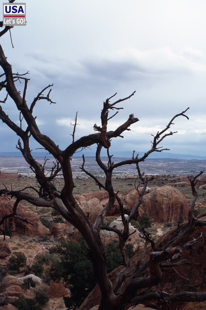Am Donnerstag, dem 29.09.1994, war unser temporary permit endgültig abgelaufen und wir waren auf die Nummernschilder angewiesen. Da wir unbedingt im Arches NP campen wollten, standen wir schon um 6.00 Uhr morgens auf und organisierten uns beim Visitor Center des Nationalparks kurz nach halb acht eine campsite. Zu so früher Stunde waren wir nicht einmal die ersten Camper, die auf der Jagd nach einer campsite waren, sondern mussten in einer längeren Schlange anstehen.