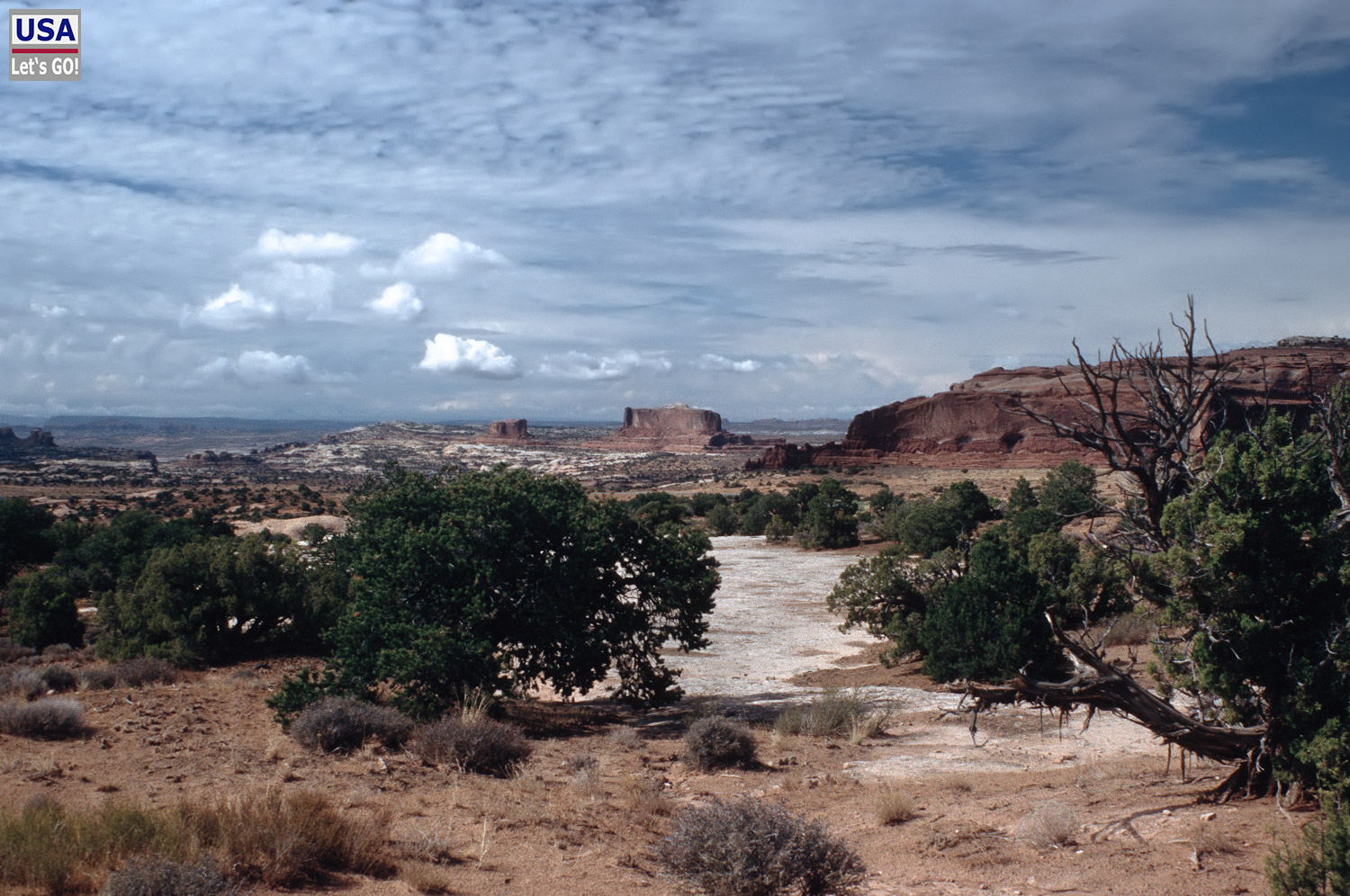 Anja erkundigte sich beim Visitor Center nach dem Campingplatz im Newspaper Rock State Park. Die Rangerin berichtete, dass das Land außerhalb der Nationalparkgrenzen im Needles District öffentlich sei und vom Bureau of Land Management (BLM) verwaltet würde. Die campsites seien zwar primitiv, aber dafür kostenlos. Für uns eine gute Alternative.