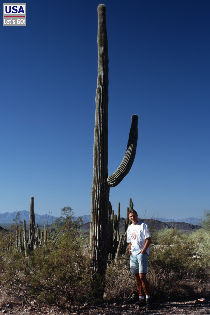 Wir hielten immer wieder an und ich machte ein paar Bilder. Anja fotografierte mich neben einem Kaktus, der locker viermal so hoch war wie ich.