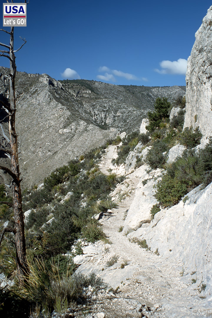 Am nächsten Morgen frühstückten wir auf der campsite. Gegen 9.00 Uhr brach ich dann zu einer Wanderung auf den Guadalupe Peak, den höchsten Gipfel von Texas auf. Die Wanderung war ein wunderschönes Erlebnis, und schon unterwegs boten sich schöne views auf die umliegende Landschaft.