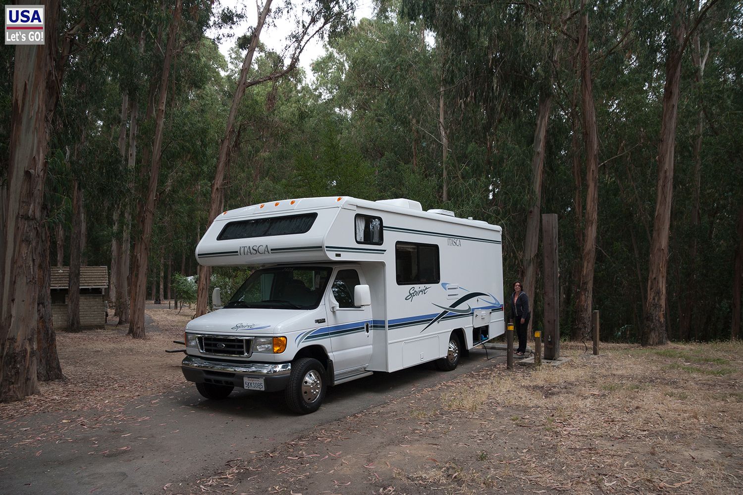 Letztlich war die Fahrt auf den Mount Diablo nicht so schlimm. Ich kam schon gut mit dem ungewohnten Gefährt klar und hatte mittlerweile auch viel größere Sicherheit nicht immer auf die rechte Seite zu achten, sondern einfach geradeaus draufzuhalten. Passt schon. Allerdings gab es bei der Bergstraße hier und da schon ein paar engere Passagen. Mit einem 30"-RV wäre ich da nicht gerne hochgefahren.