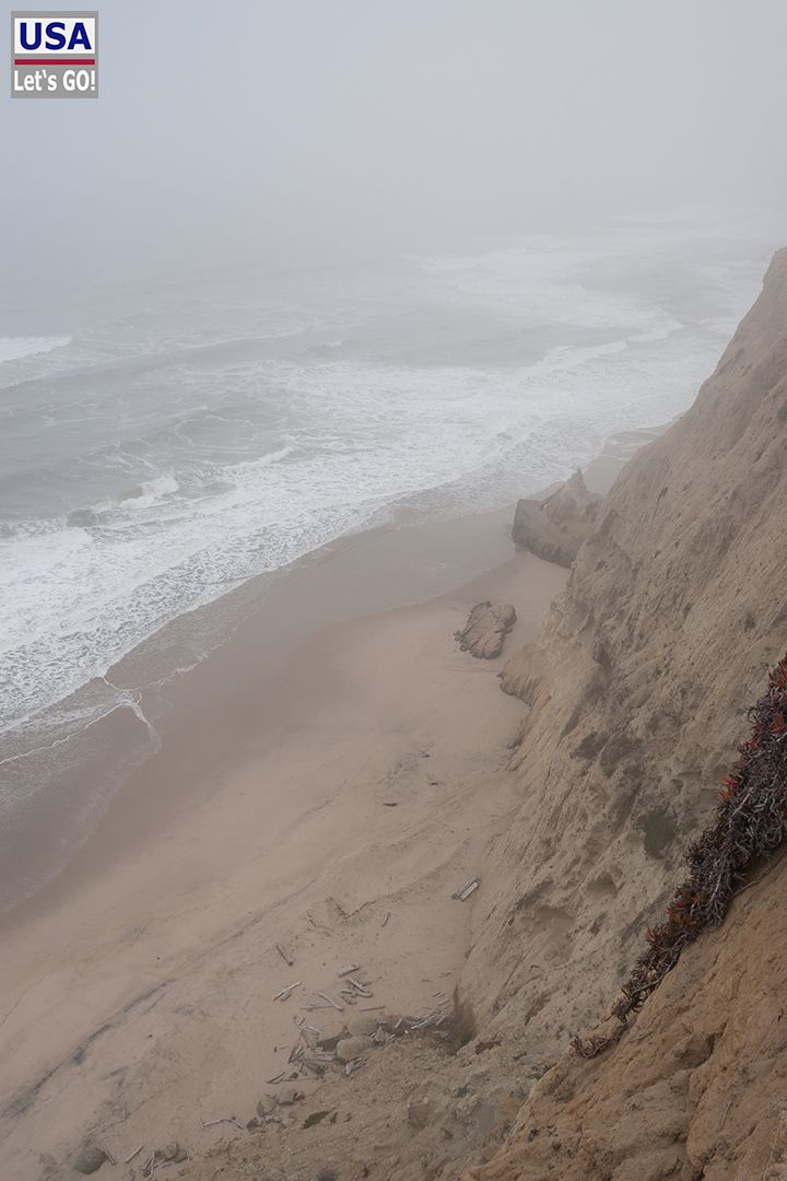 Es war noch sehr neblig. Die Küste südlich von Half Moon Bay sah unwirklich aus. Die marine layer hingen noch bis weit ins Landesinnere über dem Land. Patchy fog heißt das dann auf Amerikanisch.
