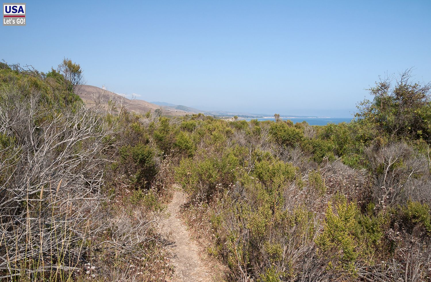Nach dem Goleta-Abstecher fuhren wir ein paar Meilen zurück Richtung Norden zum Refugio State Beach, der uns wegen der vielen Palmen am Strand von weitem gut gefiel. Ich machte eine kleine Wanderung entlang eines schmalen, stellenweise schon fast überwucherten, Pfades ...