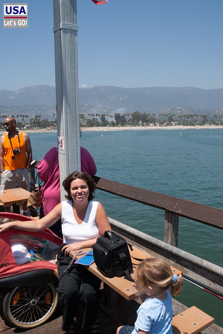 Wir gingen dann rüber zur Steams Wharf, wo wir die schöne Aussicht auf die Santa Ynez Mountains genossen, die sich hinter Santa Barbara als grandiose Naturkulisse erheben.