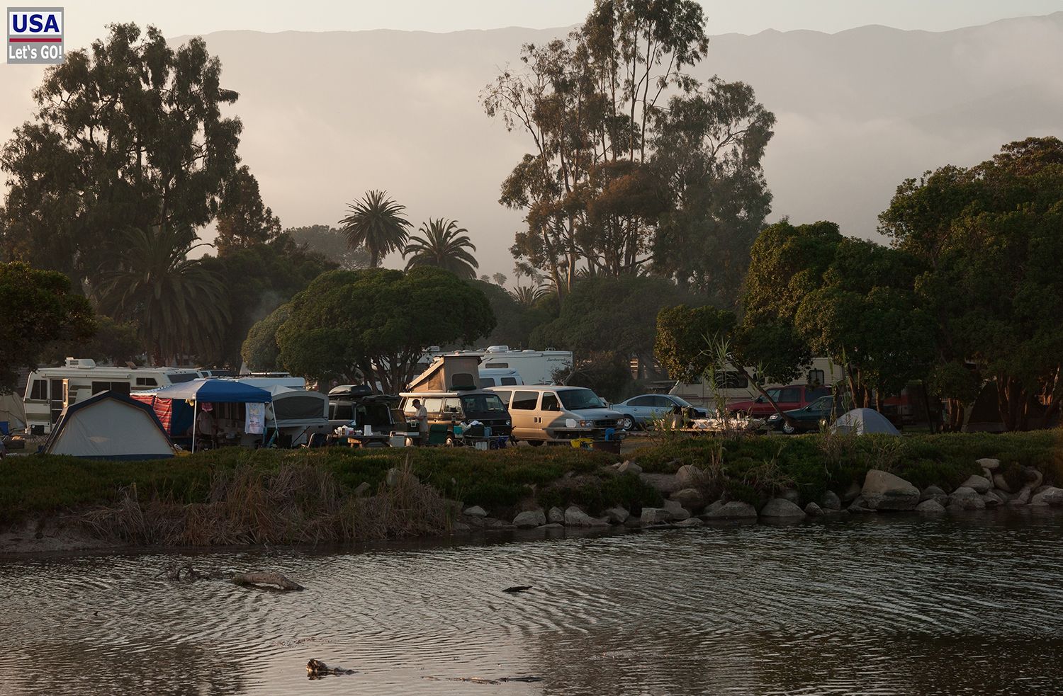 Als wir genug gesehen hatten, fuhren wir weiter zum Carpenteria SB. Auf dem knallvollen Campingplatz bezogen wir eine campsite in Strandnähe. Mensch, schon 24 Stunden kein Strand mehr - das geht doch nicht. Also nix wie los!
