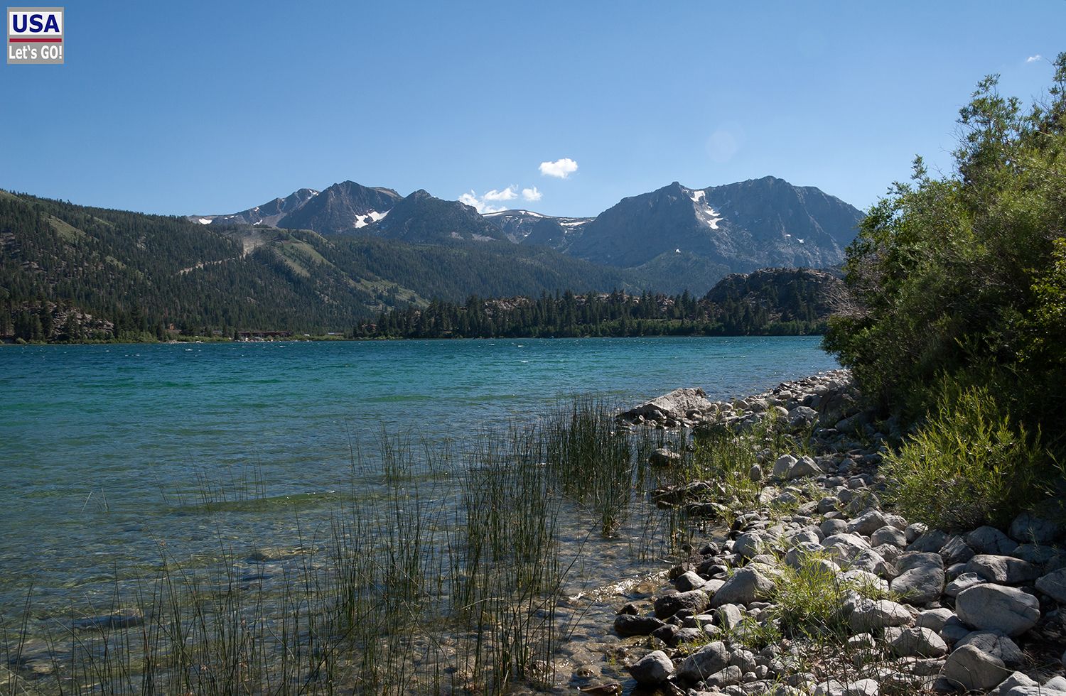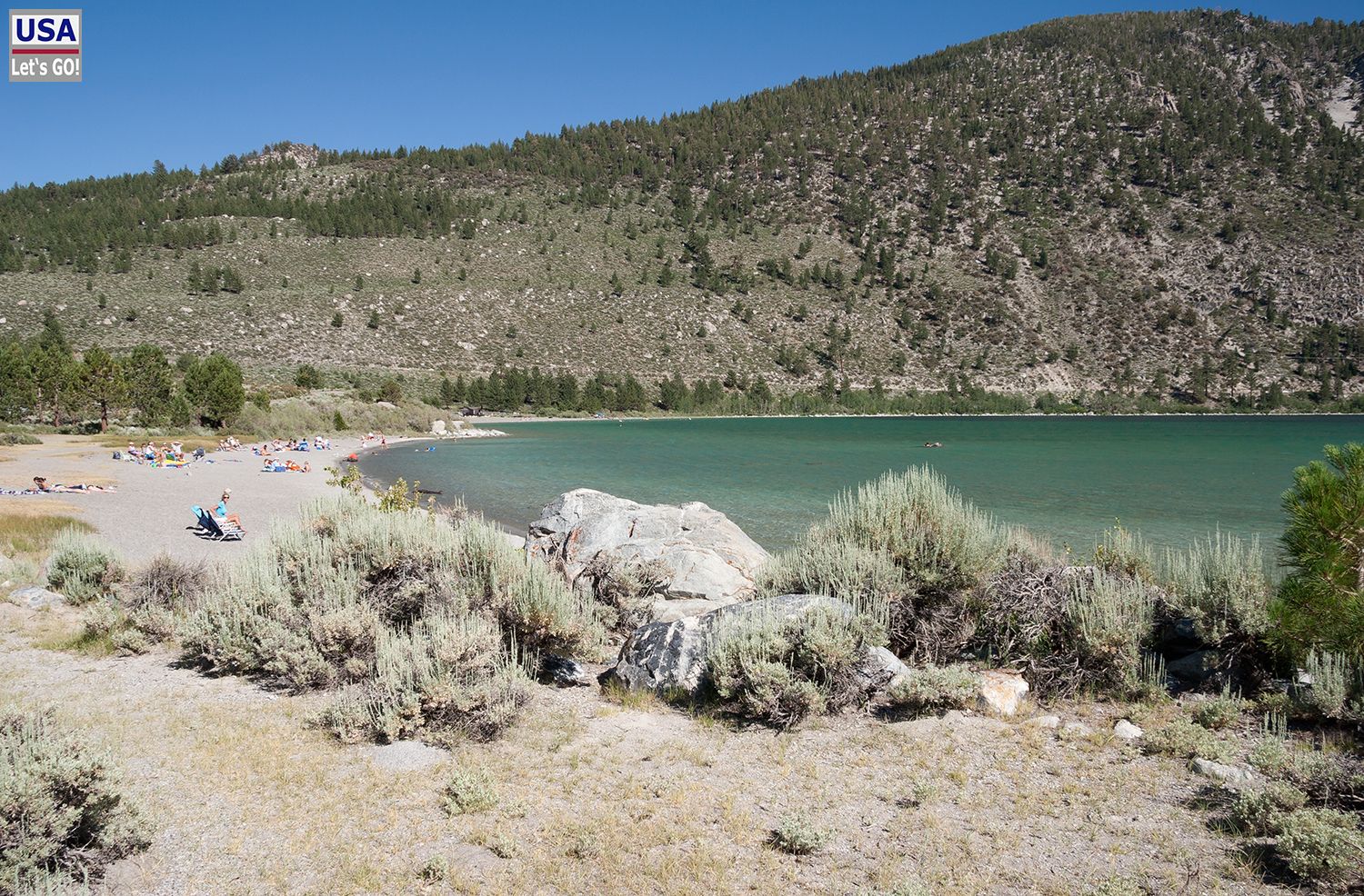 Nach ein paar schönen Stunden am Mono Lake fuhren wir zurück zu unserem geliebten June Lake. Der hat den Vorteil, dass man dort baden kann. Während Anja und die Kinder gleich an den Strand gingen, machte ich eine kleine Querfeldeinwanderung am Ostufer entlang.