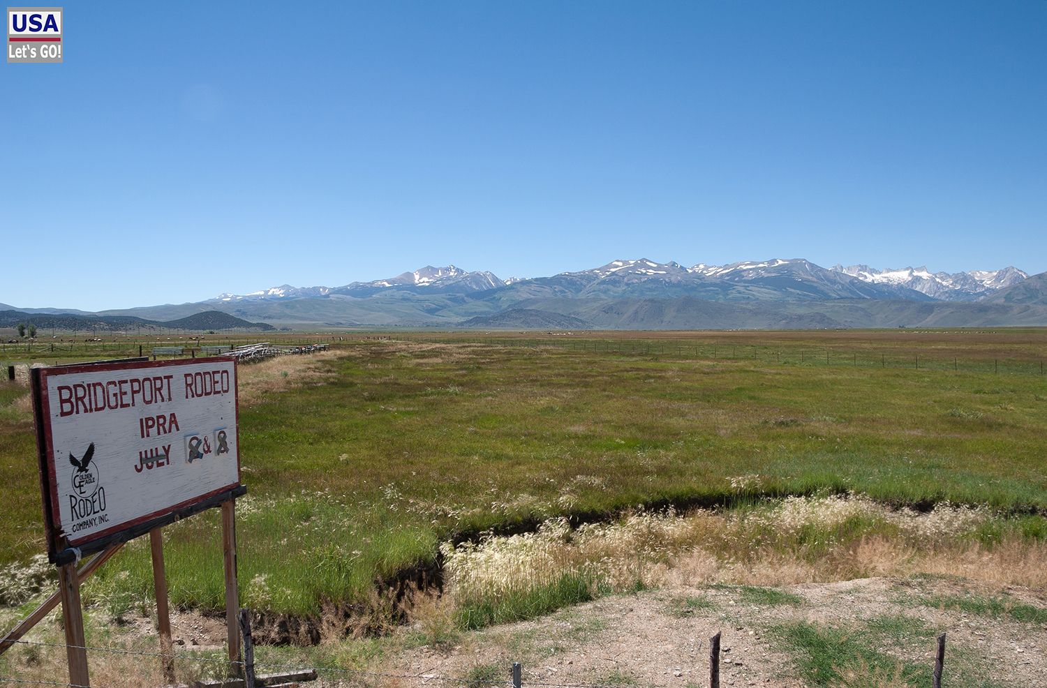 Wieder zurück auf der 395 bogen wir links ab Richtung Norden. Das Fernziel lautete Lake Tahoe. Nördlich des Mono Lakes kommt ein sagenhaft schönes Stück Highway. Die Landschaft war atemberaubend schön: saftige grüne Wiesen und dazu die schneebedeckten Gipfel der Sierra Nevada im Hintergrund.