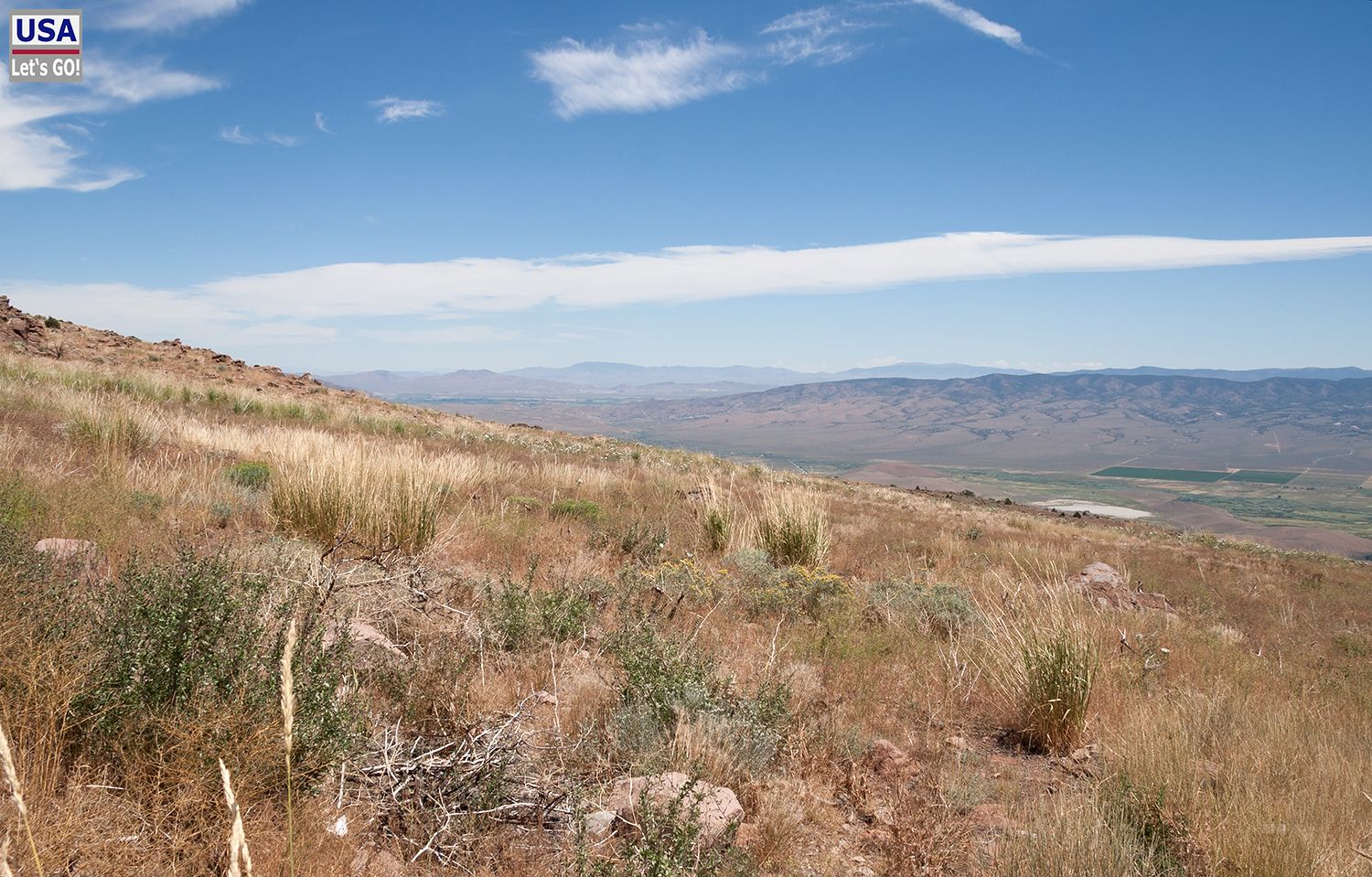 Nördlich von Bridgeport führt die US 395 weiter vorbei an fruchtbarem Weideland. Immer wieder bieten die Gipfel der Sierra Nevada einen faszinierenden Anblick. Kurz vor dem Topaz Lake bogen wir links auf die US 89 ab. Nach dieser Abzweigung (Slinkard Junction) windet sich die Straße auf einer Länge von acht Meilen über Serpentinen hinauf zum Meteor Pass.