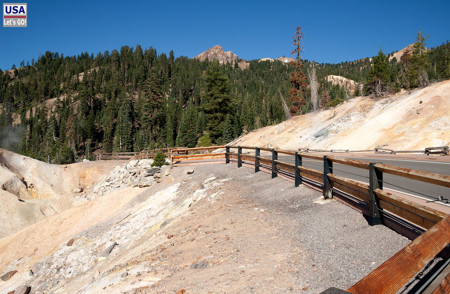 Morgens stand dann Sightseeing im Lassen Volcanic NP auf dem Programm. Wir fuhren die Parkstraße Richtung Norden und machten gleich bei den Sulphur Works einen Stopp. Hier zischte und brodelte es an verschiedenen Ecken und es roch erbärmlich nach faulen Eiern.