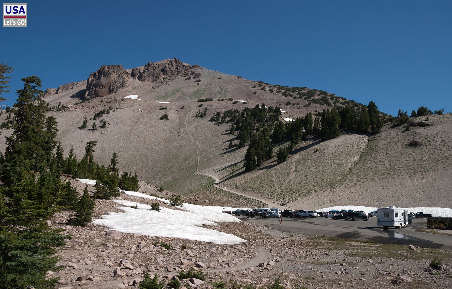 Natürlich haben wir uns auch die Kronjuwelen des Parks näher angesehen: den Lassen Peak. Drauf geklettert sind wir nicht, da wir das schon 1999 erfolgreich hinter uns gebracht hatten (2009 dann später nochmal).