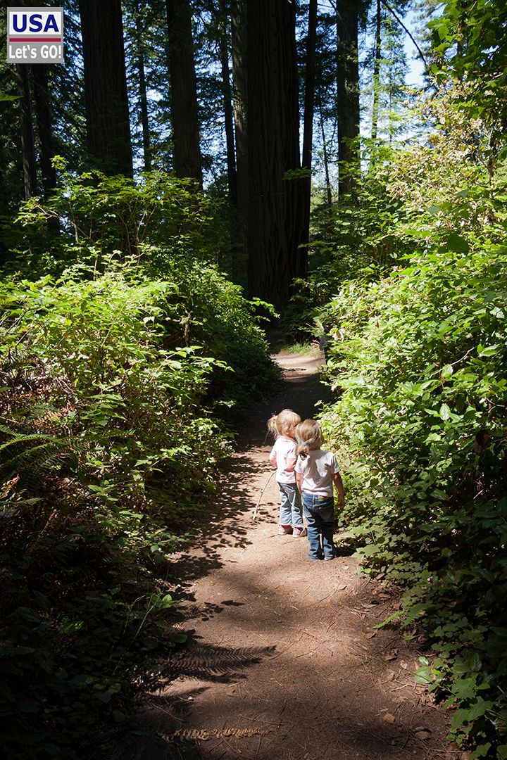 Richtig begreifen kann man die Mächtigkeit der altehrwürdigen Redwoods aber erst, wenn man aus dem Auto rauskommt. Also machten wir einen schönen Spaziergang durch die Lady Bird Johnson Grove. Der Weg ist sehr einfach und auch unsere Kinder - Laura und Lisa-Marie jedenfalls - konnten problemlos mit wandern. Annalena musste natürlich abwechselnd von Mama und Papa getragen werden.