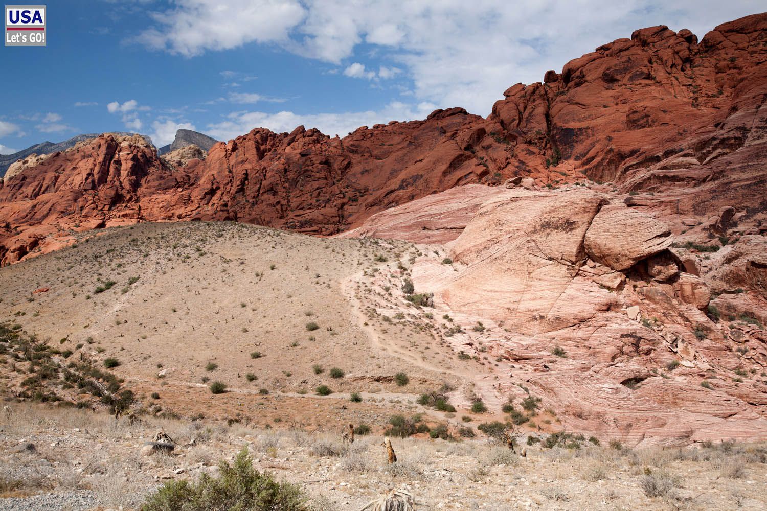 Auf dem Weg zurück nach Las Vegas kam ich durch den ausnehmend hässlichen Ort Pahrump, wo ich den Wagen tankte. Dann fuhr ich weiter Richtung Las Vegas, machte jedoch noch einen Abstecher zum Red Rock Canyon. Die Abzweigung lag sowieso auf dem Weg. Als es links abging zur Red Rock Canyon Road fuhr ich bis zum Scenic Loop Drive. Es war Nachmittags und die Sonne stand Ende September schon relativ tief.