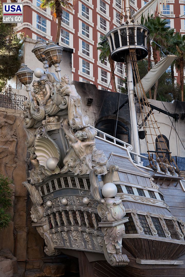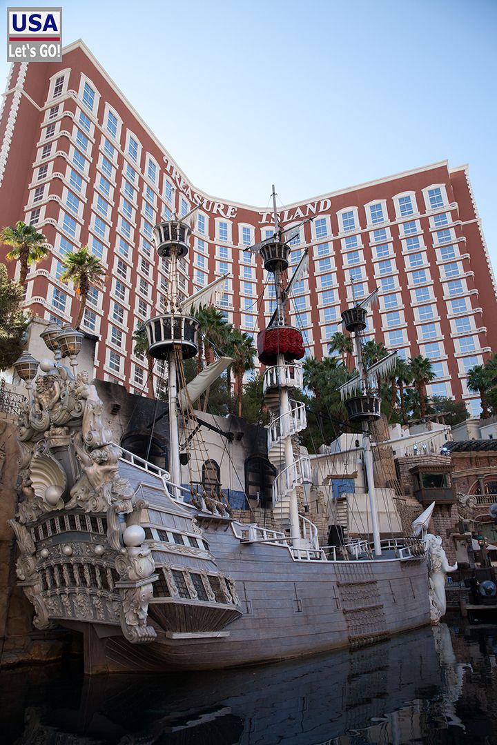 Als ich die Loop beendet hatte, fuhr ich über den Charleston Blvd bis zum Las Vegas Blvd und bog nach rechts ab. Vor mir lag der berühmte Las Vegas Strip. Das Wynn ließ ich links liegen und fuhr kurz danach zum Treasure Island, wo ich ein Zimmer reserviert hatte.