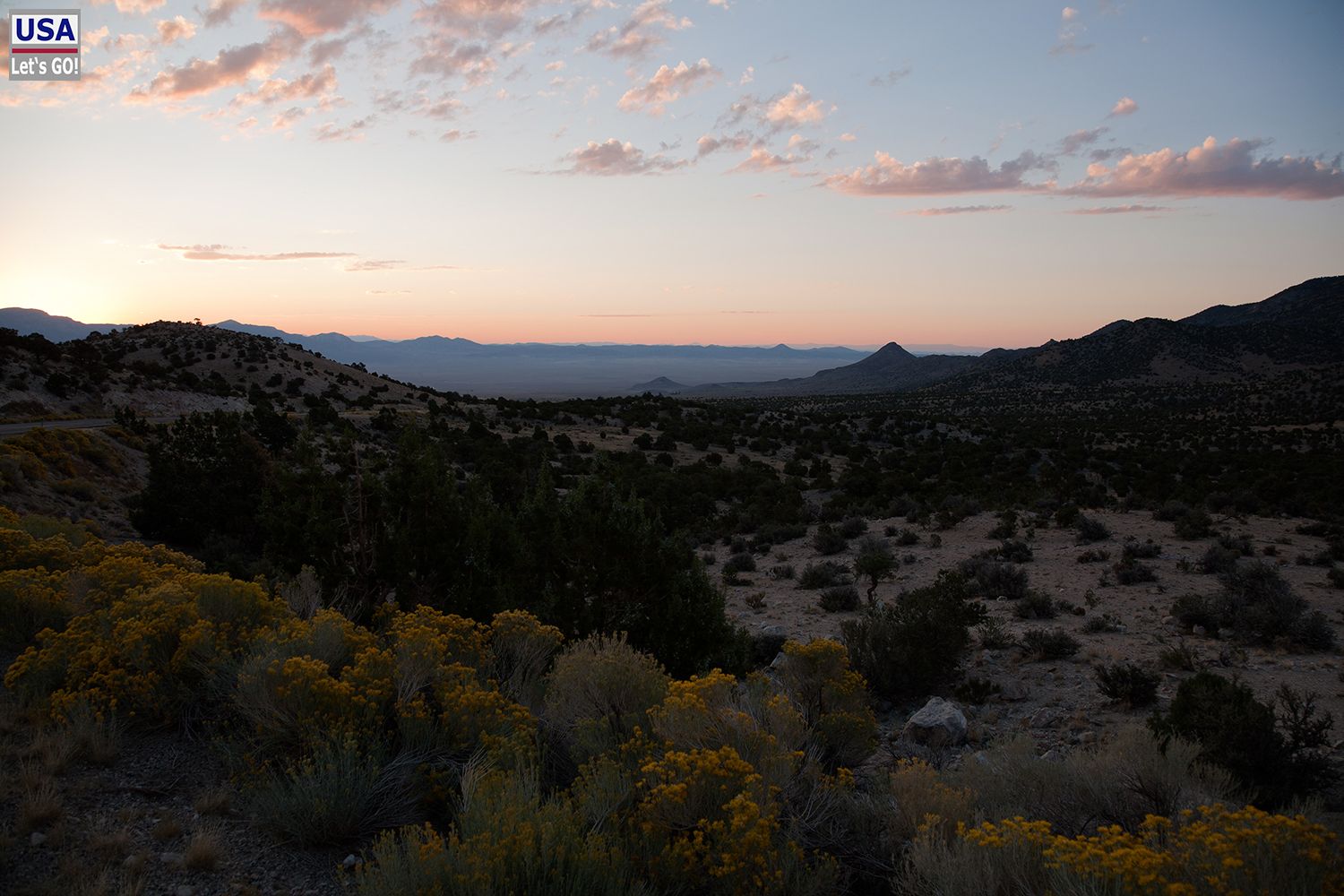 Diese bezaubernde Stelle nutzte ich um eine kleine Pause zu machen und die aufgehende Sonne zu bewundern, die die wunderschöne Landschaft im äußersten Westen Nevadas in zarte Pastelltöne tauchte.