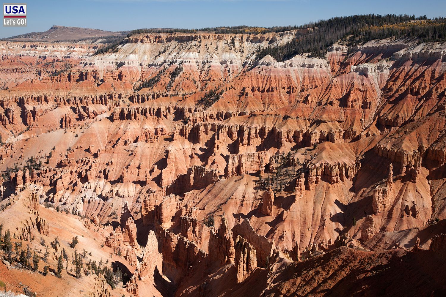 In Milford (UT) bestellte ich bei Penny´s Diner ein großes amerikanisches Frühstück und surfte ein wenig im WLAN. Bald danach erreichte ich die I 15 und fuhr in südlicher Richtung bis nach Cedar City und von dort weiter zum Cedar Breaks NM. Auf über 3000 m Höhe war es selbst am späteren Vormittag noch ziemlich kühl. Aber was für eine fantastische Luft.