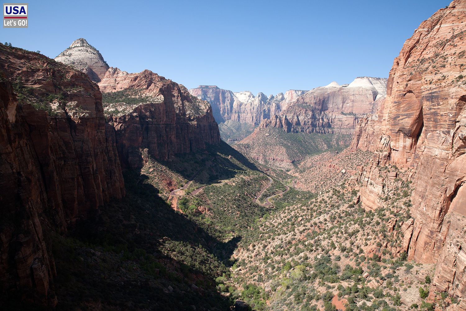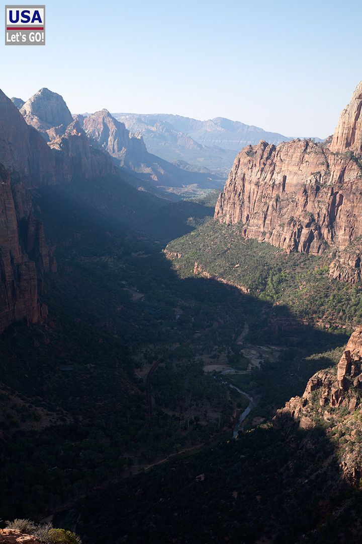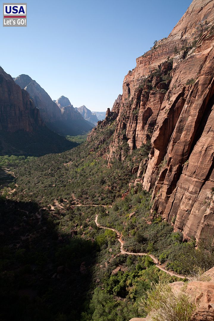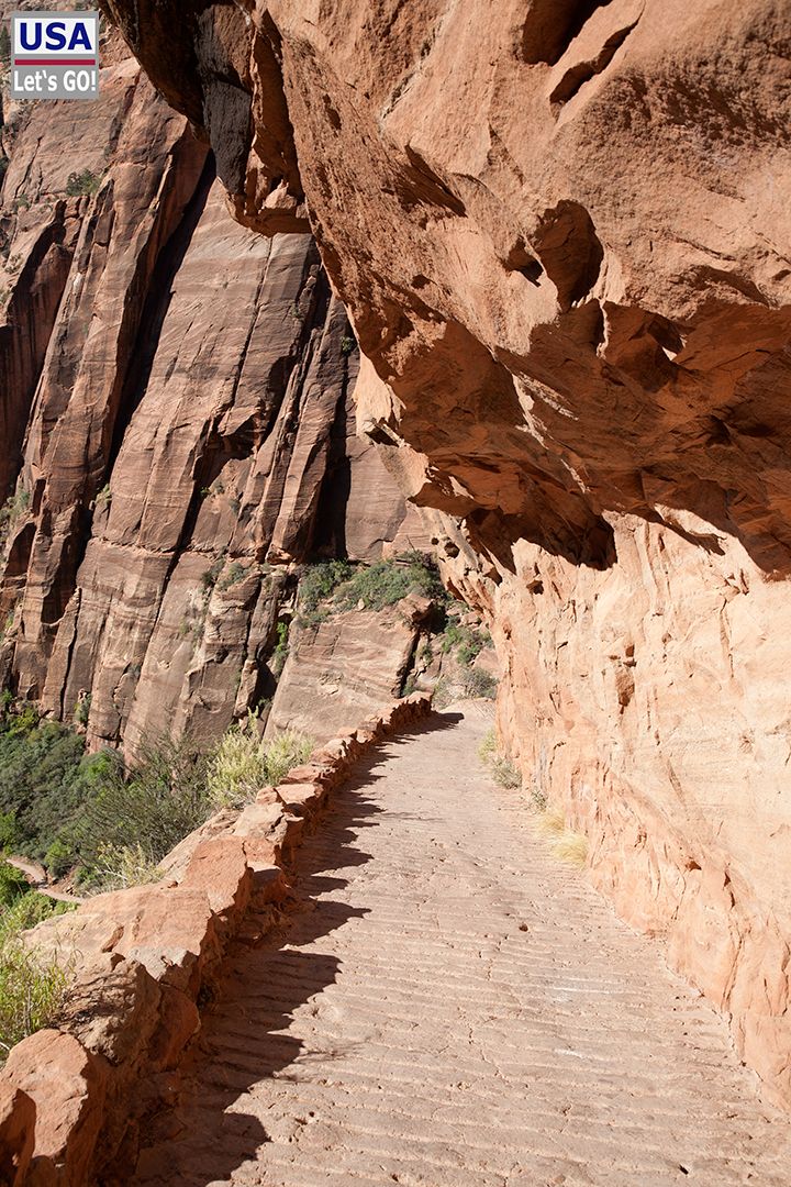Der Aufstieg fiel mir nicht schwer und ist insgesamt auch wesentlich weniger anstrengend als der gegenüberliegende Weg zum Observation Point, den ich im Vorjahr schon gemacht hatte. Auch die Kraxelei über den Felsgrat, vor dem einige Leute Panik haben, weil es links und rechts steil bergab geht und nur manche Passagen mit Ketten gesichert sind, fand ich harmlos.