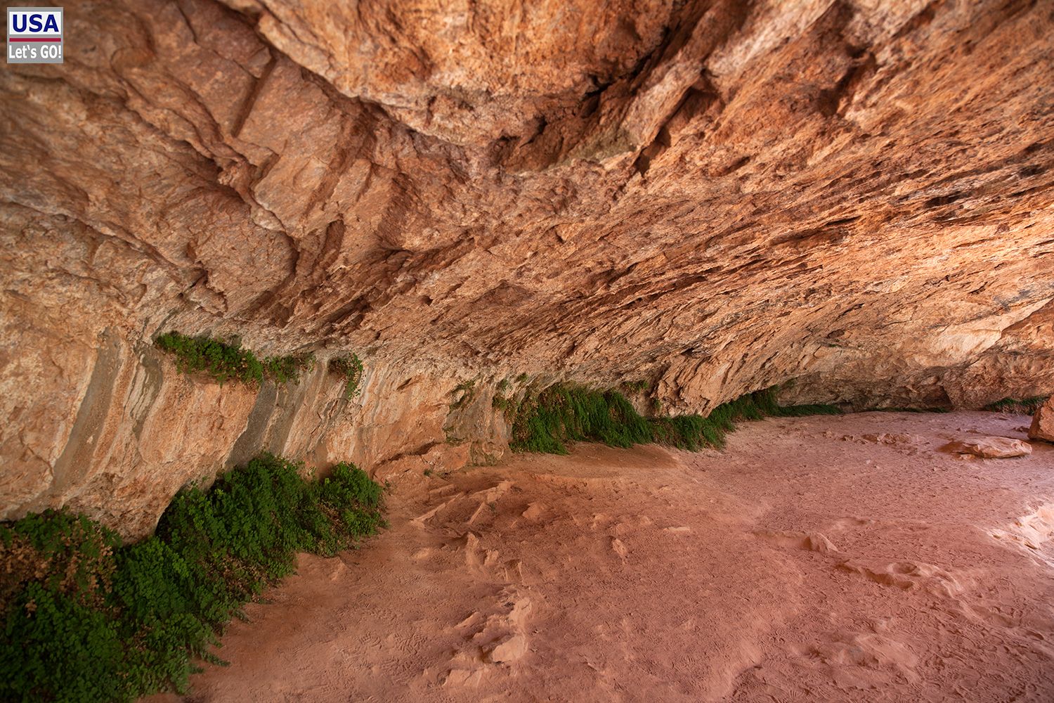 Der Weg führt an einem höhlenartigen Überhang vorbei. Ist bestimmt das Resultat von Wind- und/ oder Wassererosion. Ich fand das beeindruckend.