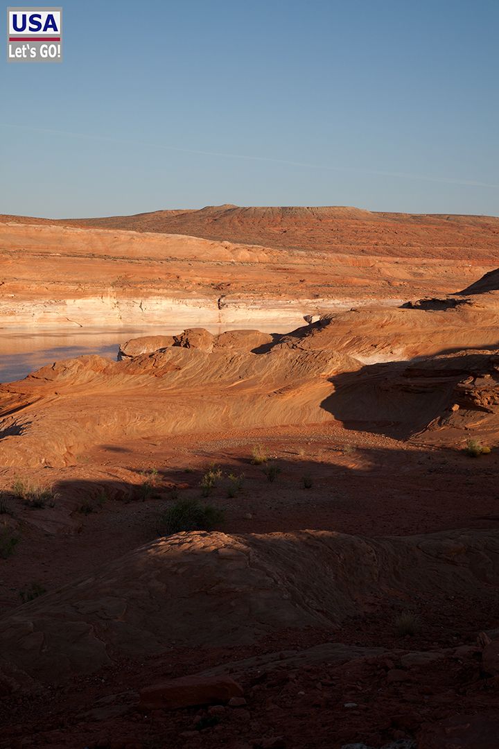 Ich hatte mir diverse Stellen vorgenommen, die ich besuchen wollte. Ich packte meine Sachen, checkte aus und ging zu Denny`s zum Frühstücken. Dann rollte ich die UT 89 runter Richtung Westen. Bevor ich den Glen Canyon Dam überquerte, suchte ich mir noch eine schöne Stelle für ein paar Fotos.