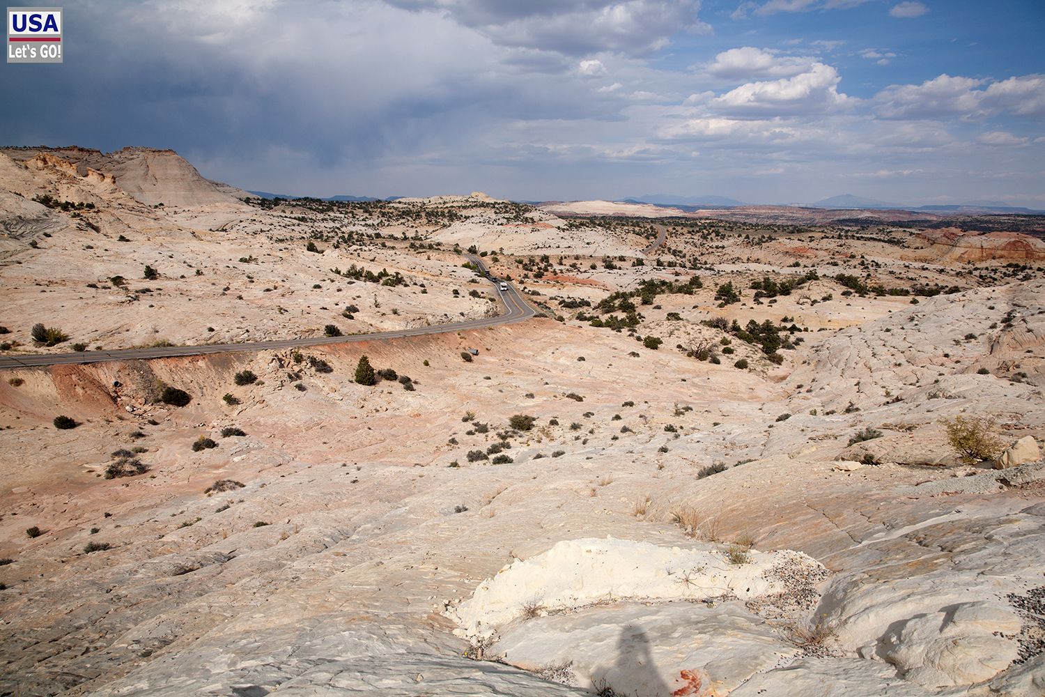 In Boulder bog ich wiederum rechts auf den Burr Trail ab. Dieser stand ebenfalls lange auf meiner Liste, bis ich es 2007, damals sogar mit einem Wohnmobil, wenigstens bis zum Long Canyon geschafft habe. Diesmal wollte ich jedoch weiter zu den berühmten switchbacks fahren.