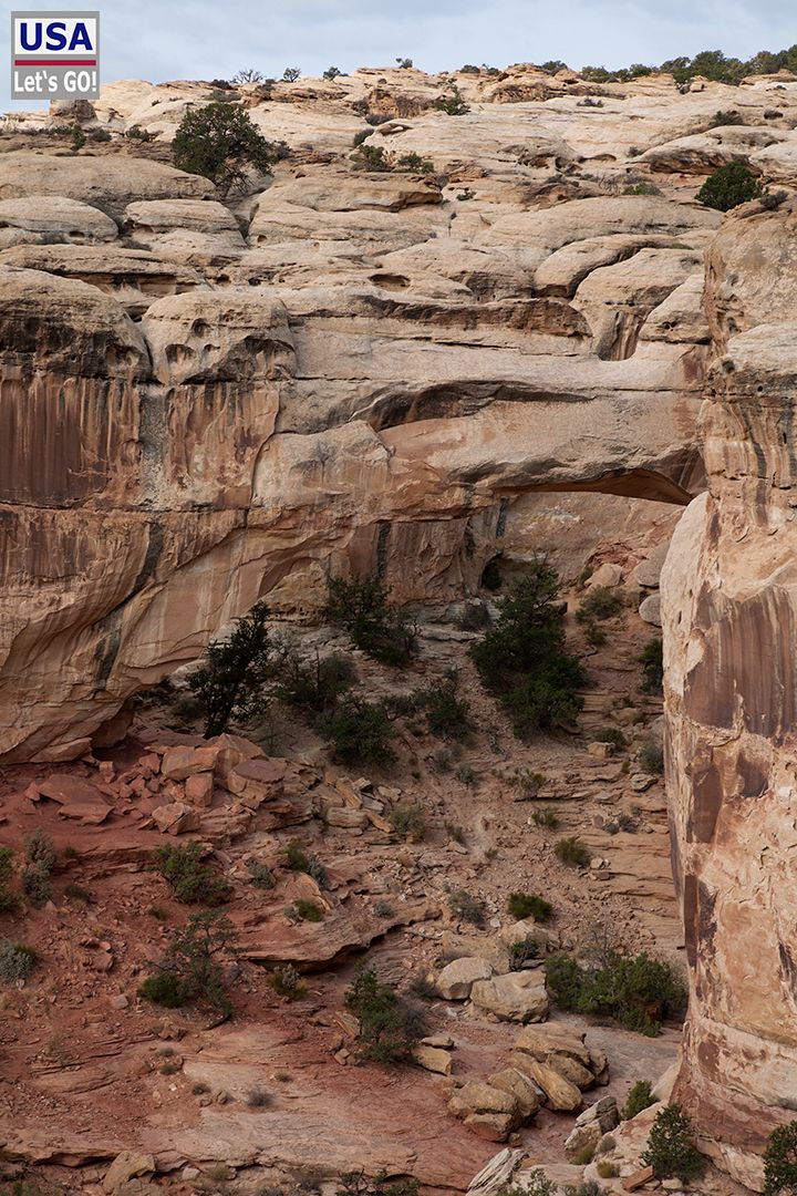 Zunächst ging der trail sanft bergan, gewann aber zunehmend an Höhe. Man kommt auch an der Hickman Bridge (s. Bild rechts) vorbei.