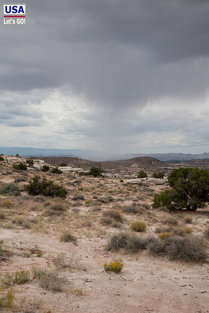 Aber das Wetter! Hier und da konnte man lokale thunderstorms sehen, die nicht weit von meiner Route runtergingen. Bei Nässe wollte ich nicht auf einer dirt road unterwegs sein und schon gar nicht auf einer so langen wie der Cathedral Valley Road.