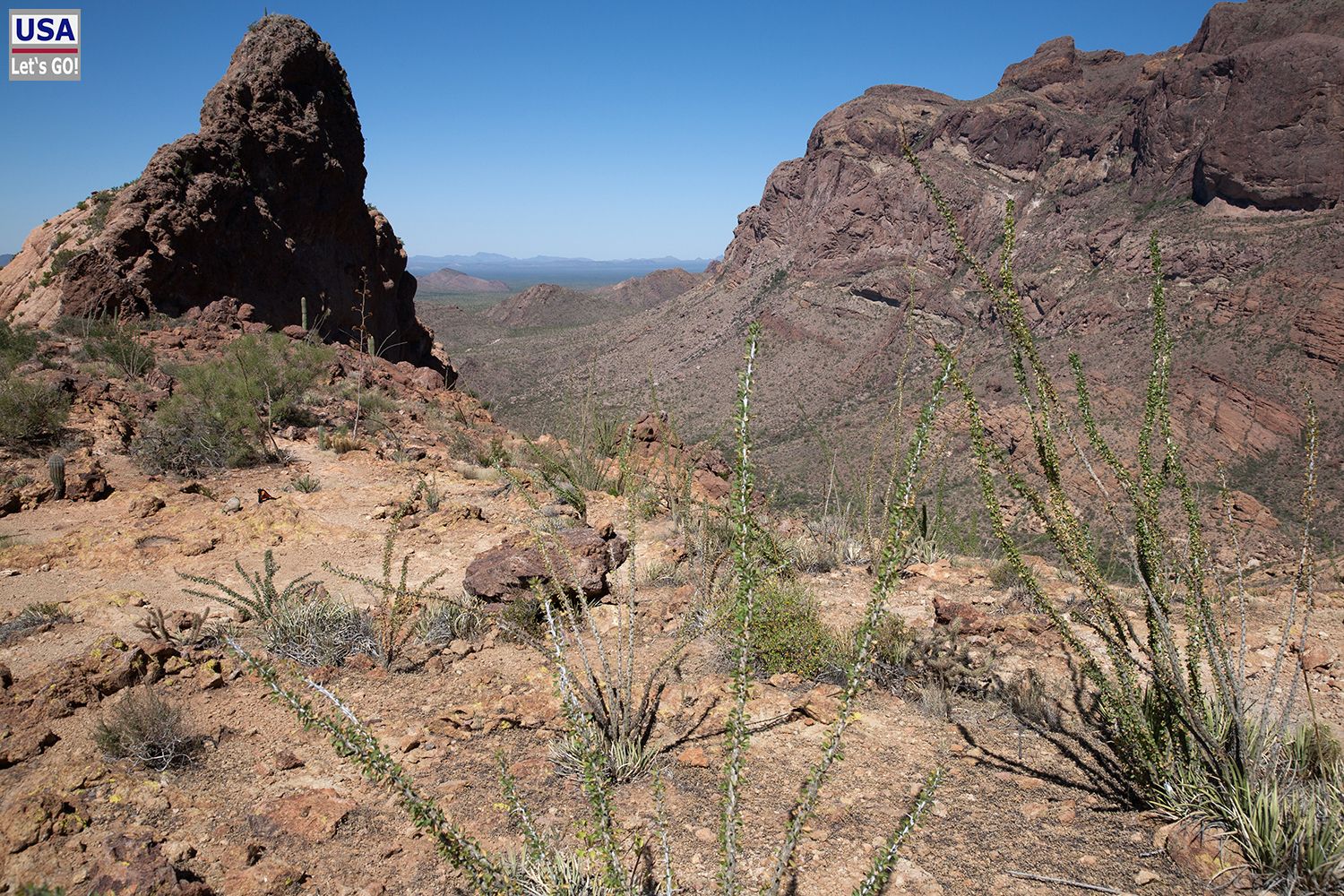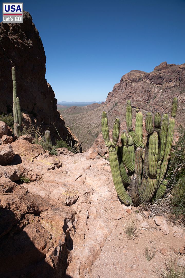 Stattdessen machte ich noch zwei trails. Der kleine Nature Trail beim Visitors Center stand am Anfang. Dann kam der Bull Pasture Trail, den ich schon von 1994 kannte. Der Weg führt steil hinauf in die Ajo Mountains. Fantastisch.