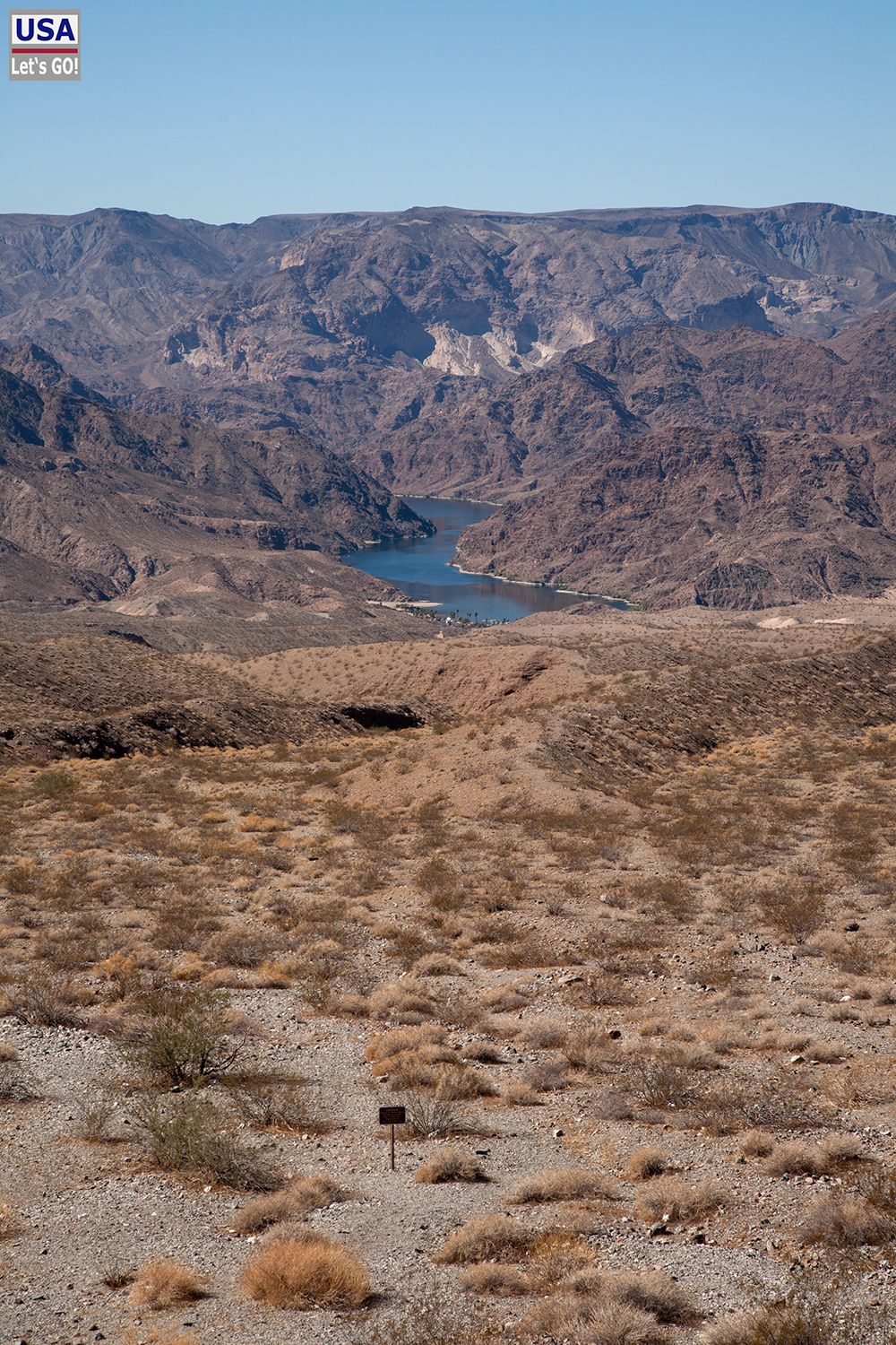 Bald zeigte sich linker Hand der Colorado River als schmales Band, das sich zwischen den kargen Hügeln entlang schlängelt.