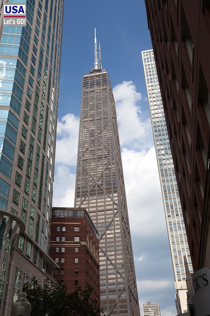 Zunächst spazierte ich ein wenig nach Norden in Richtung John Hancock Center (s. Bild rechts). Dabei holte ich mir bei Starbucks den ersten Orange-Mango Smoothie des Urlaubs. Jetzt war ich richtig angekommen.