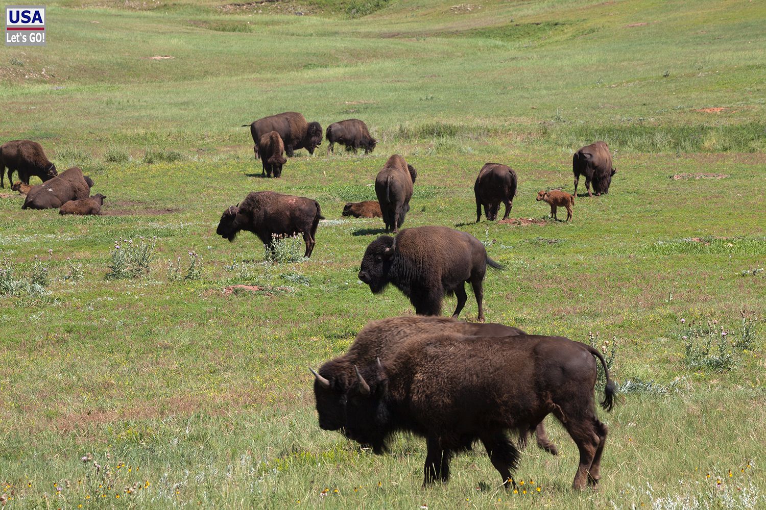 Stattdessen fuhren wir in einem Zuge durch zum Wind Cave Nationalpark. Wie bei amerikanischen Nationalparks üblich, hat auch dieser Park weit mehr zu bieten als "nur " ein großes, namengebendes Höhlensystem. Große Bisonherden grasten auf den hügeligen Weiden der Prärie - ein fantastischer Anblick.