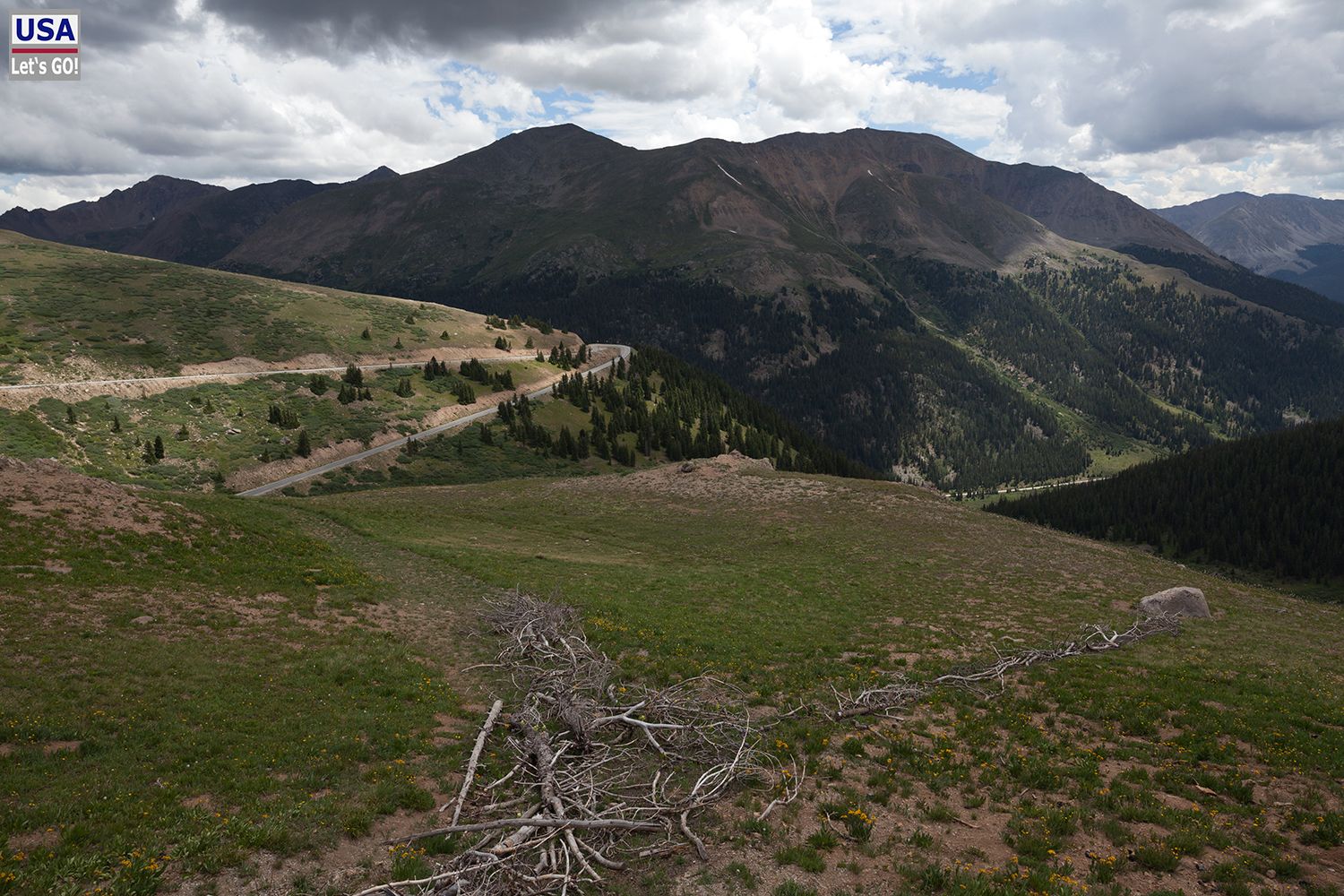 Kurz hinter Twin Lakes windet sich die Straße hoch zum Independence Pass. Die Landschaft wurde immer schöner, auch wenn sich in den höchsten Lagen mehr und mehr Wolken an der Sonne vorbei drängelten.