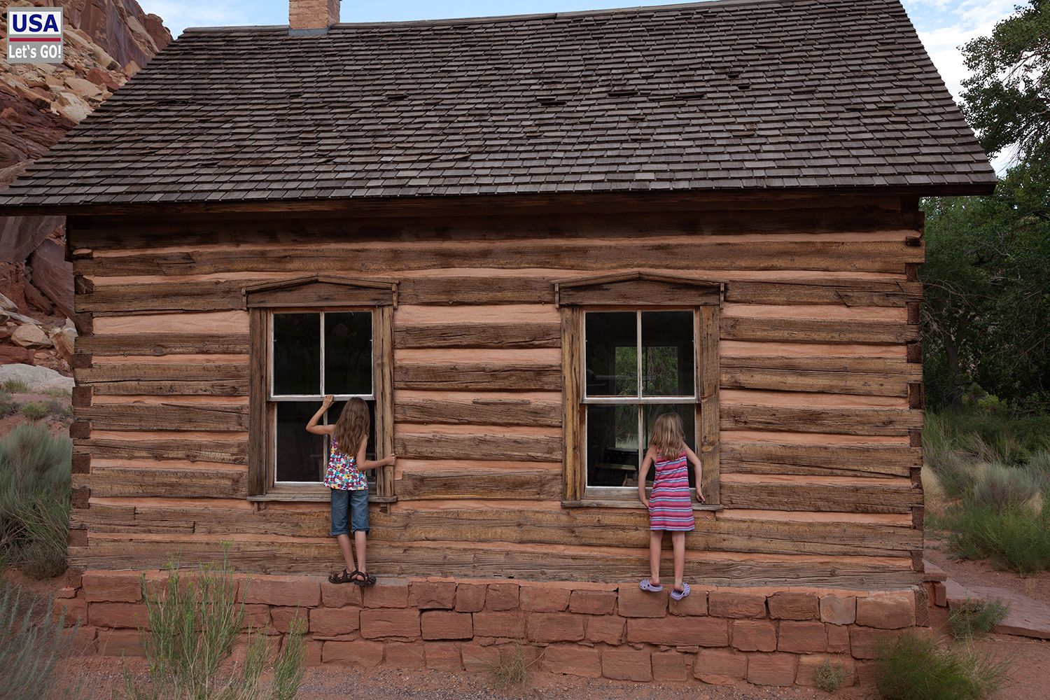 Auf dem Rückweg zum Motel machten wir noch einen kurzen Stopp bei der Historic Fruita School. Lisa-Marie und Annalena waren fasziniert, dass das einmal eine echte Schule war. Während der Autofahrten spielten die beiden sowieso mit sagenhafter Ausdauer "Schule" und waren ganz hin und weg von dem kleinen Schulgebäude.