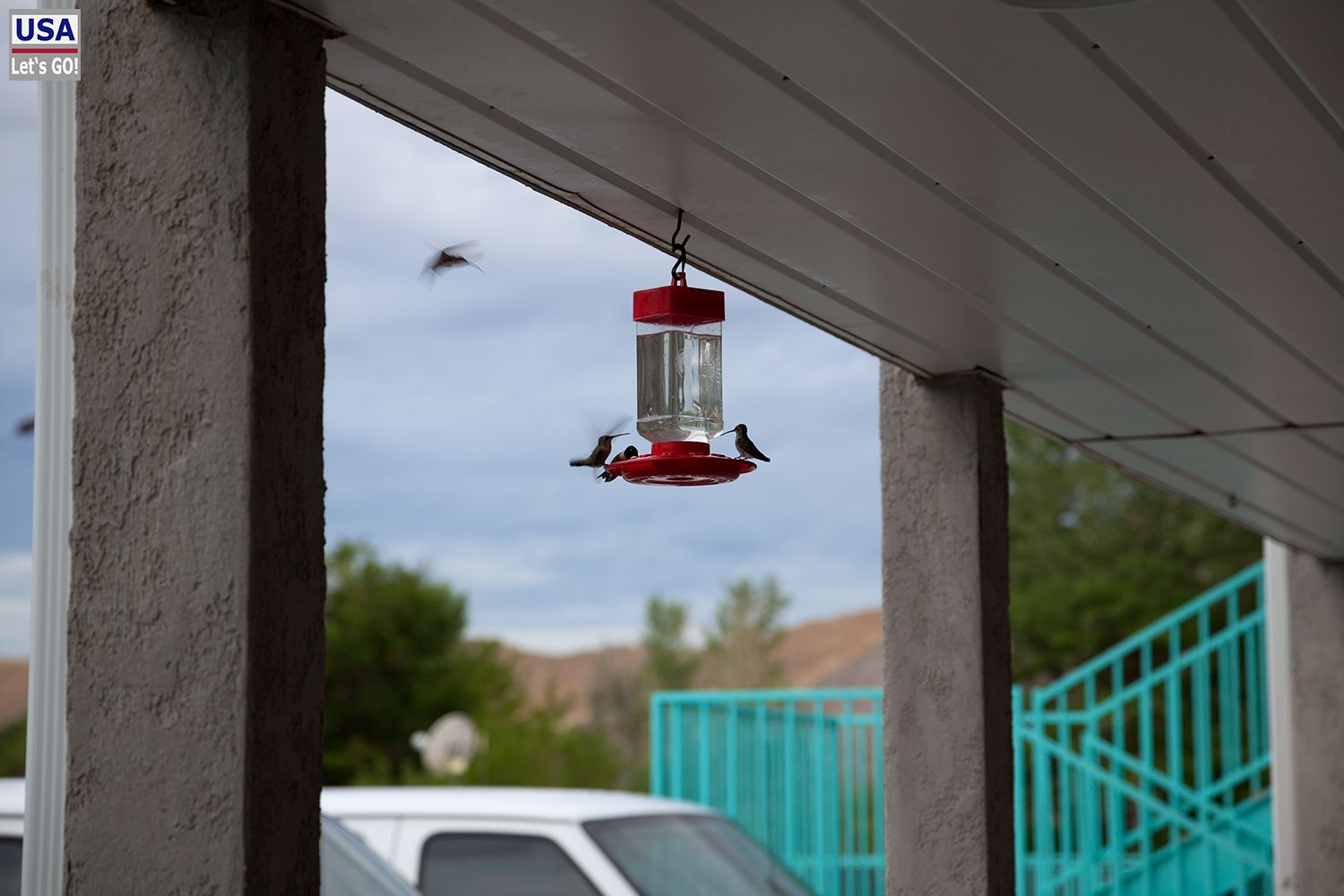 Die Kolibri-Tränke auf der Veranda des Rodeway Inn war für Lisa-Marie und Annalena ein echtes Highlight.