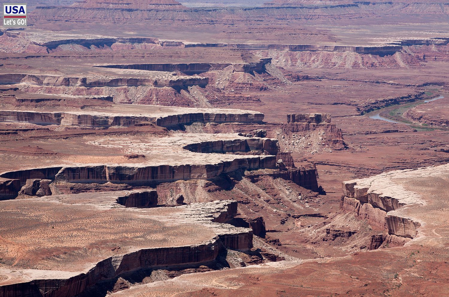Zurück auf dem Asphalt ging es weiter in den Canyonlands NP, wo ich den Shafer Overlook zunächst links liegen ließ und zum Green River Overlook weiterfuhr. Sollte nur eine Stippvisite sein, aber diesen schönen Aussichtspunkt ganz in der Nähe wollte ich nicht auslassen. Später würde dafür keine Gelegenheit mehr sein.